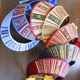 К кокошнику Княжна в нашем магазине можно купить оплечье - широкий плоский воротник, лежащий на плечах, платье, манжеты.