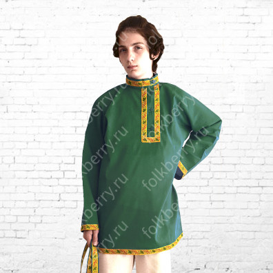 Косоворотка Народная, хлопок, зеленый