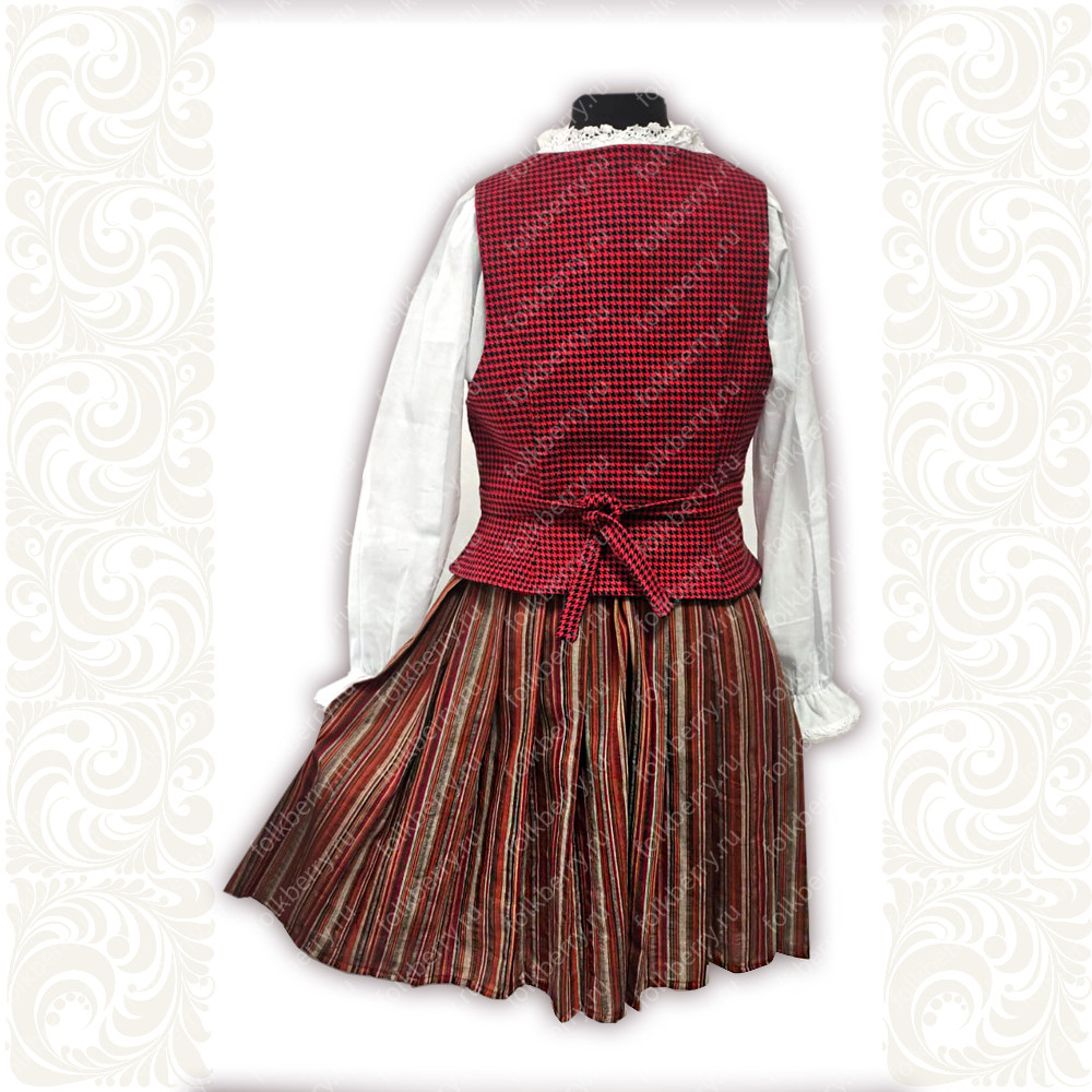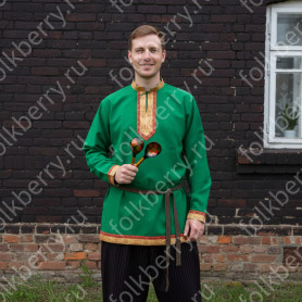 Выполненный в православном стиле сарафан с блузой «Дуняша» сшит из натурального хлопка в цветочек. Модель скромно декорирована однотонным воланом в цвет с основной тканью и тесьмой вьюнок. Можно носить под пояс и регулировать бретели по длине. Белая блузка из хлопка с длинным рукавом расшита натуральным нежным кружевом.