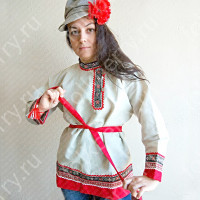 Платье «Дмитра» отрезное по талии, рукав реглан, юбка-почти солнце, длиной немного ниже колена. В комплект входит пояс. Важно, что декор платья выдержан в славянском стиле. Это платье - современное прочтение народных традиций. Женственное, удобное и нарядное, оно дарит ощущение радости и праздника. По стилю замечательно подходит для тематических праздников в детских  учебных заведениях, по фасону и яркости цветов отлично подойдет для танцевальных коллективов.  как правило, дети не стесняются надевать его ( в отличии от длинного русского сарафана ) Платье выполнено из немнущейся, матовой ткани "габардин" символичных для славян цветов ( красного, синего, зеленого, бордового).
