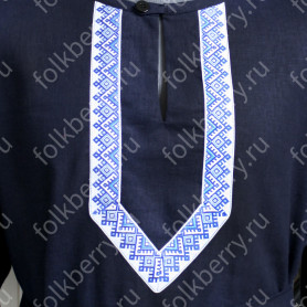 Платье изготовлено из умягченного белого льна и украшено жаккардовой тесьмой с узорами Гжель и  белым кружевом разной ширины, а также бархоткой и  изысканной серебристой тонкой тесьмой. Платье силуэта А, расклешено к низу. В комплект входит  пояс с веревочками на концах. Рукава - удобный реглан, также декорированы кружевом и  жаккардовой тесьмой. Платье немного просвечивает, желательно надевать с легким подъюбником или юбкой-поневой.
