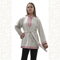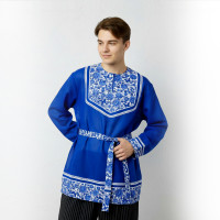 Рубаха Истоки, белый хлопок с синим