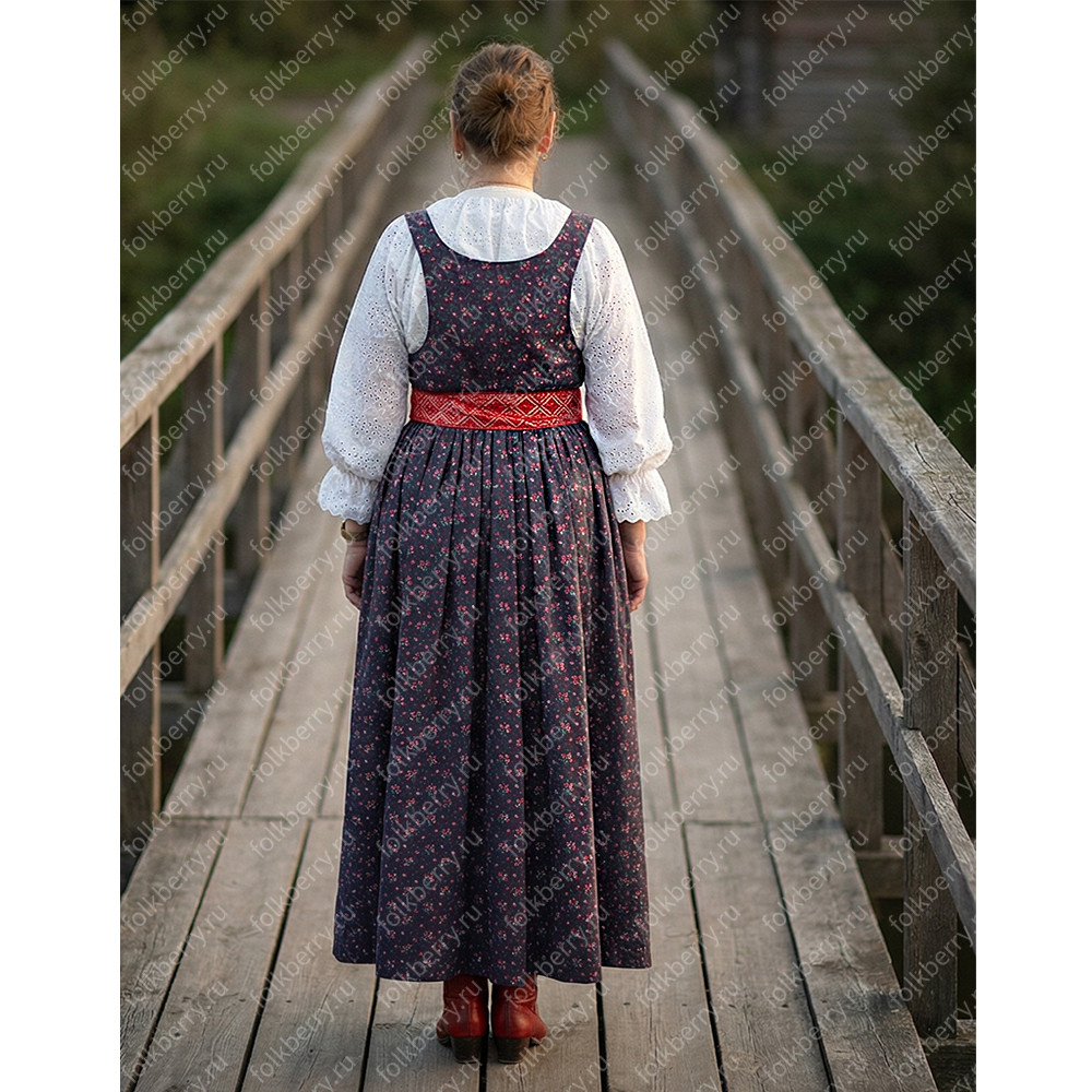 Сарафан: 100% хлопок с историческим синим цветочным принтом восстановленным на Шуйском ткацком производстве;