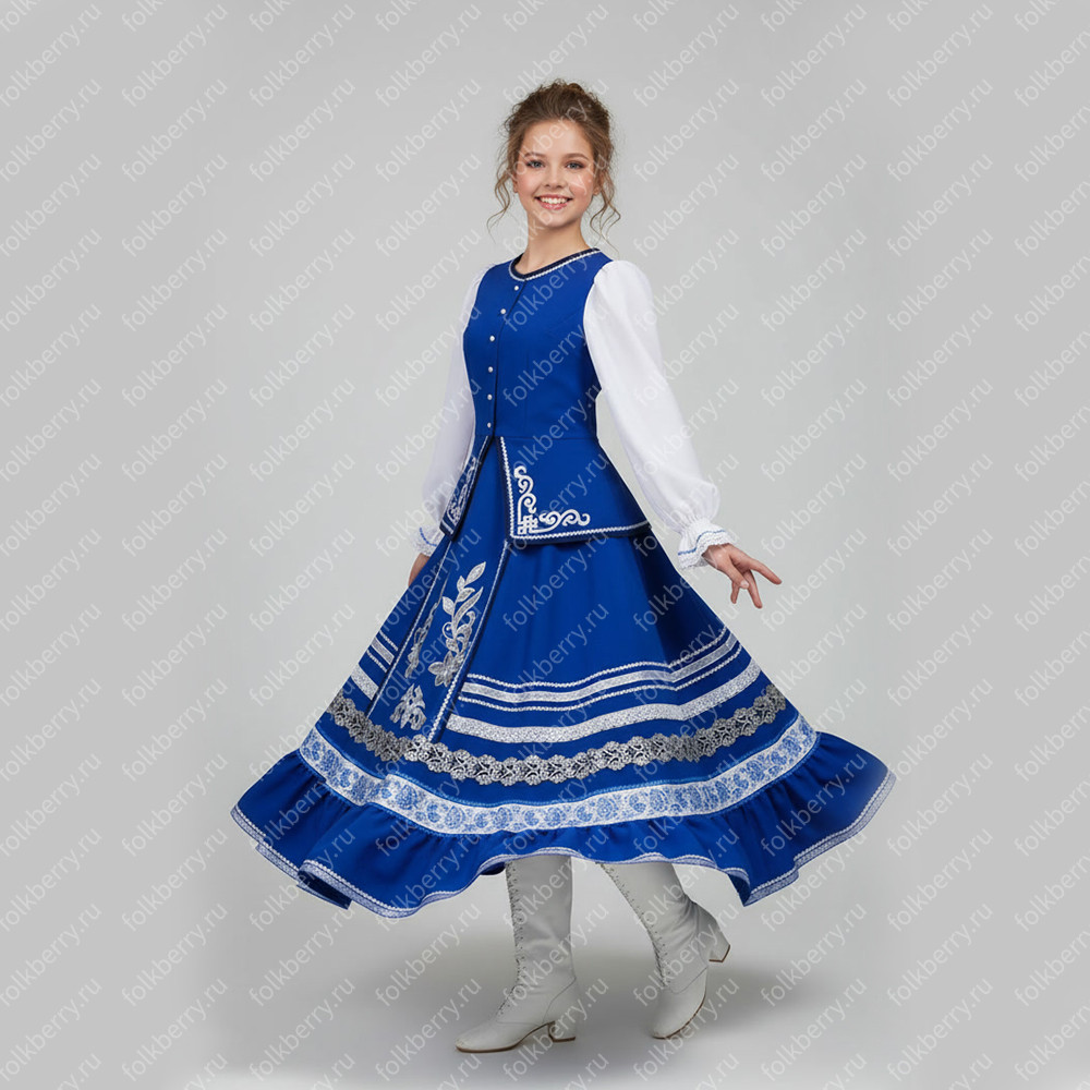 Женский танцевальный костюм Катюша, габардин, синий